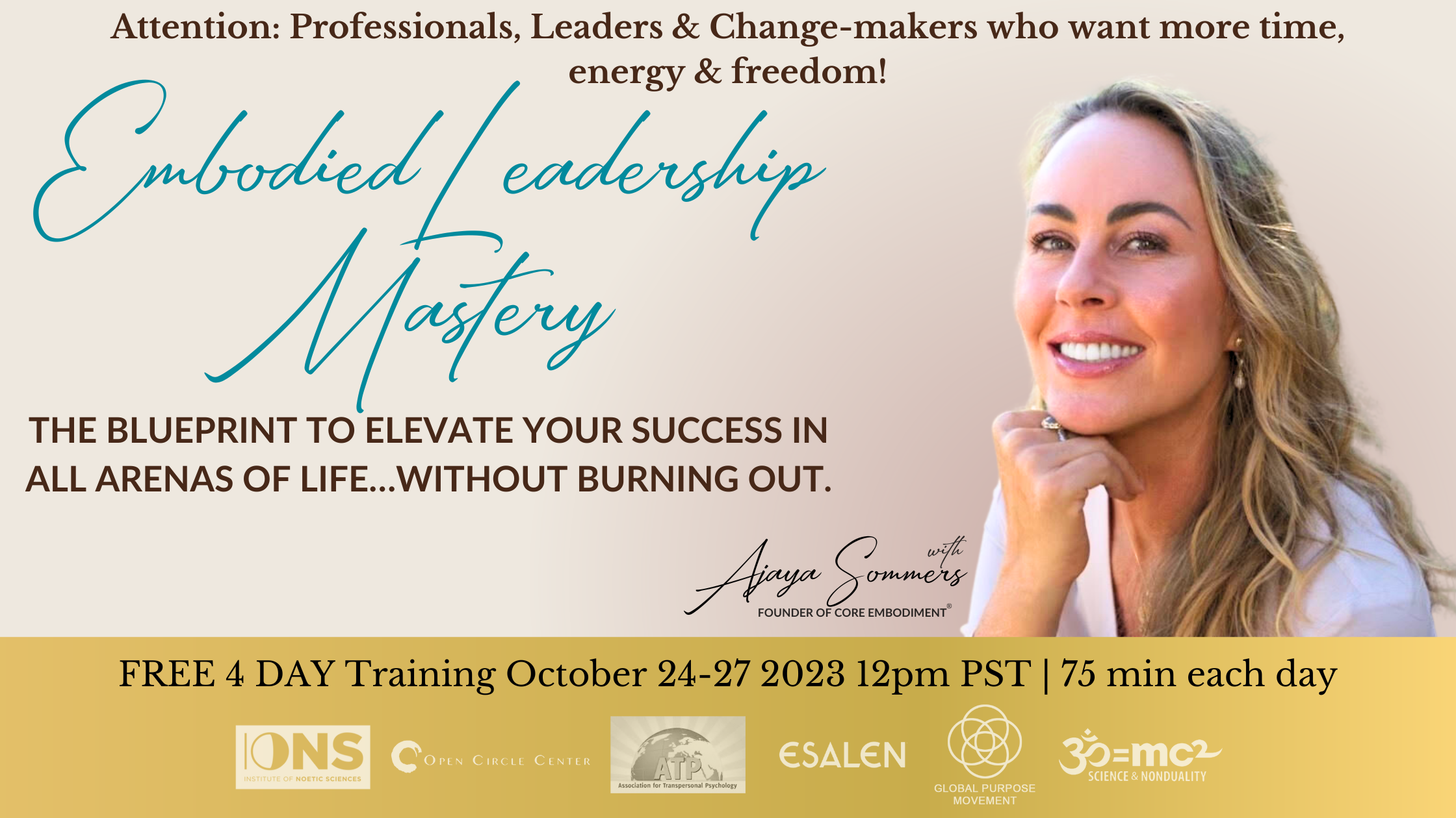 Ajaya is the founder of a unique somatic discovery process called, Core Embodiment® — an integrated system of embodiment practices, principles and perceptual orientations to awaken and align with the power of your human potential. She is a certified Biodynamic Craniosacral Integration Teacher, a NARM practitioner (Neuro-affective-relational model -which addresses developmental trauma) as well as an Authorized Continuum Teacher.